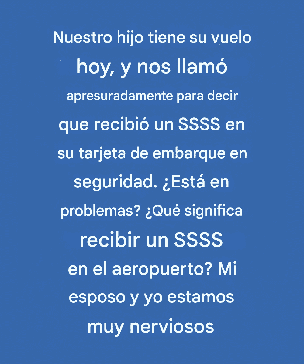 Ese código, "SSSS", significa Selección de Inspección de Seguridad Secundaria. Es un indicador utilizado por la Administración de Seguridad del Transporte (TSA) para indicar a un pasajero que debe someterse a una inspección adicional antes de embarcar. La presencia de este código suele sorprender a los viajeros, ya que no se anuncia con antelación y suele ser evidente solo en el aeropuerto, cuando los procedimientos de seguridad tardan repentinamente más de lo previsto.