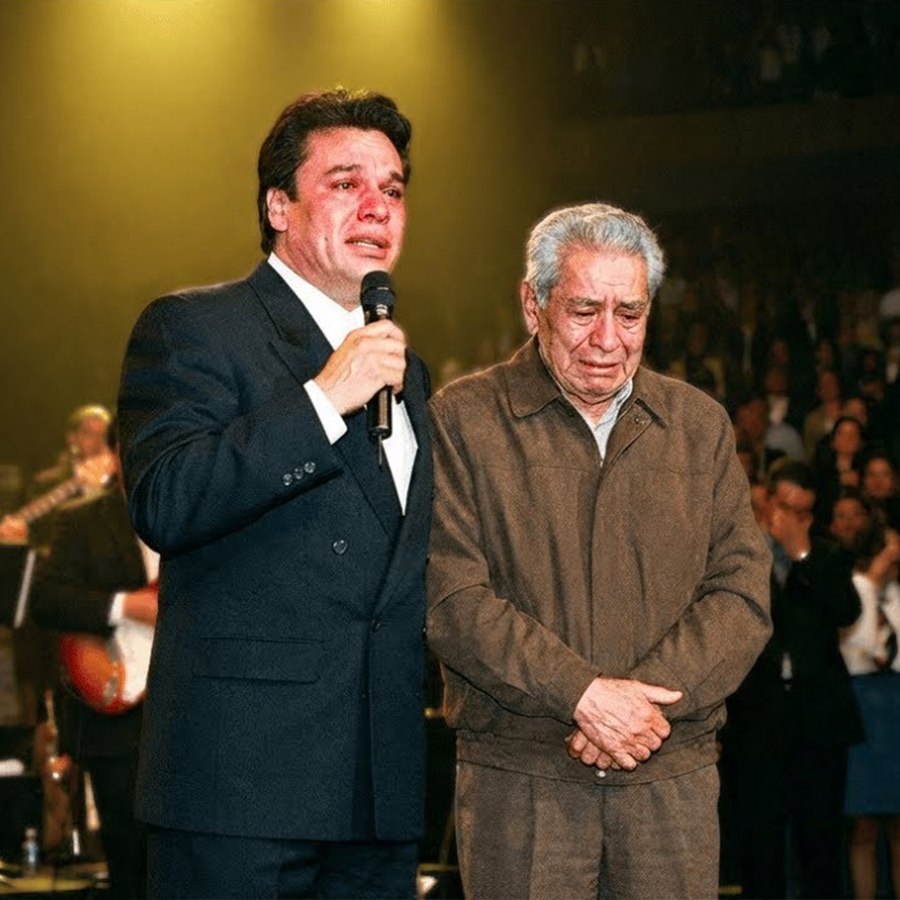 Juan Gabriel no podía creer lo que estaba viendo cuando sus ojos se fijaron en un anciano de cabello blanco sentado en la segunda fila del Auditorio Nacional. Era octubre de 1995 y estaba en medio de Amor Eterno, una de sus canciones más emotivas frente a casi 10,000 personas. Continuó cantando, pero comenzó a bajar lentamente las escaleras del escenario, sin dejar de mirar al anciano que lo observaba con lágrimas corriendo por su rostro arrugado.