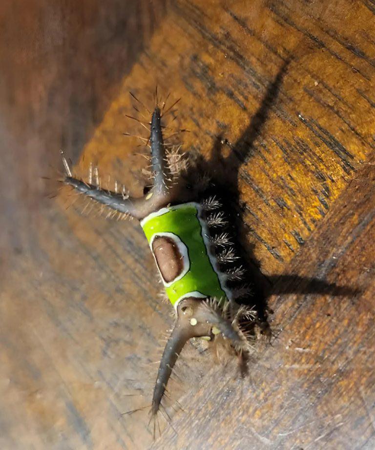 Se arrastró lentamente por el suelo y púas oscuras sobresalían de su cuerpo, largas y delgadas, como si estuviera advirtiendo específicamente: "No me toques".